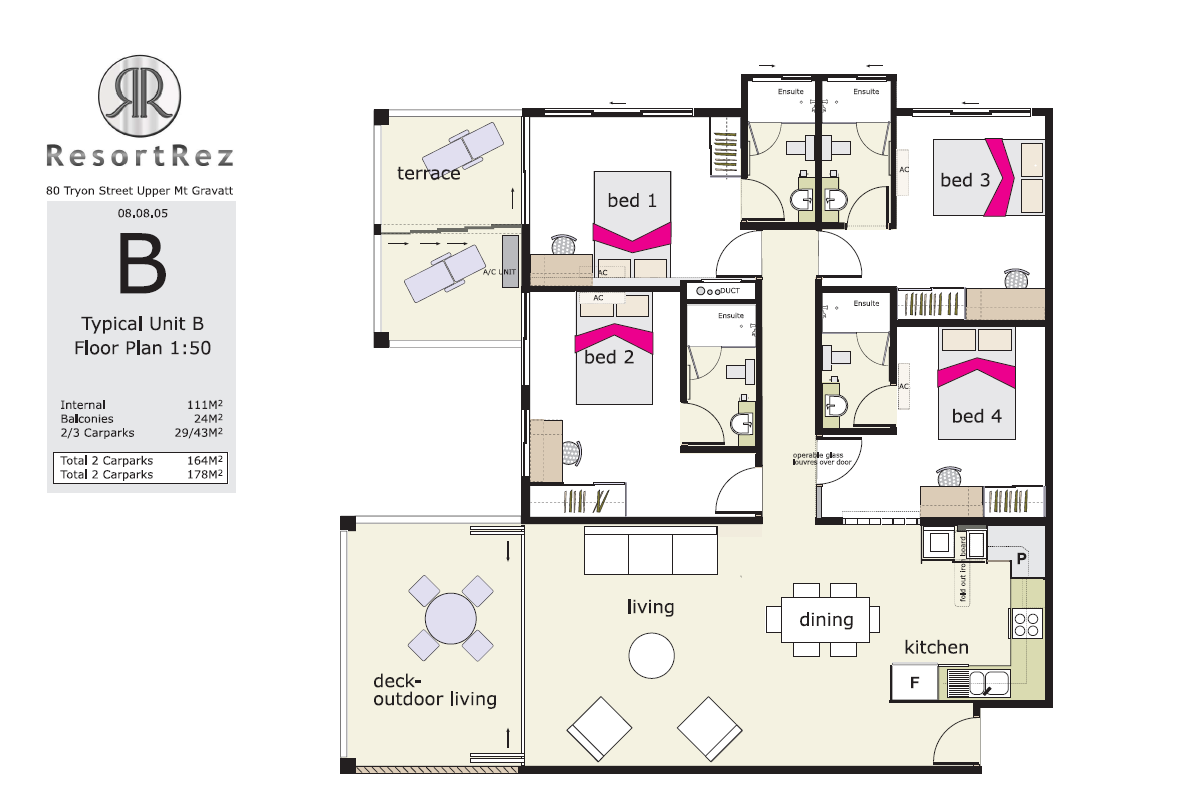 Located within the vibrant Aspen Living CoVE complex, this ground-floor 4-bedroom, 4-bathroom apartment is perfect for those looking to enjoy a comfortable, convenient lifestyle with a strong sense of community. Designed for privacy and practicality, each bedroom features its own ensuite, built-in robe, and individual air-conditioning unit – ideal for students, professionals, or families seeking a low-maintenance lifestyle.